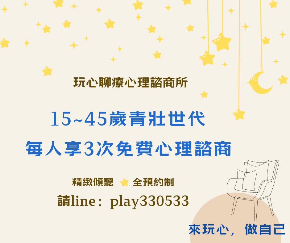 15~45歲民眾,每人享有3次政府付諮商費,每次40分鐘